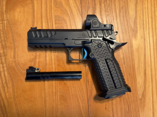 The Atlas Gunworks Apollo v2 Perfect Zero Pistol is a premium, double-stack 1911/2011-style handgun chambered in 9mm Luger, built around a 4.6″ bull barrel with porting to reduce muzzle rise and support fast follow-up shots. The Apollo platform is commonly described by Atlas and dealers as an “evolution” that blends elements from other Atlas lines to create a versatile, optics-capable 9mm suited for high-round-count range use and performance-focused training.