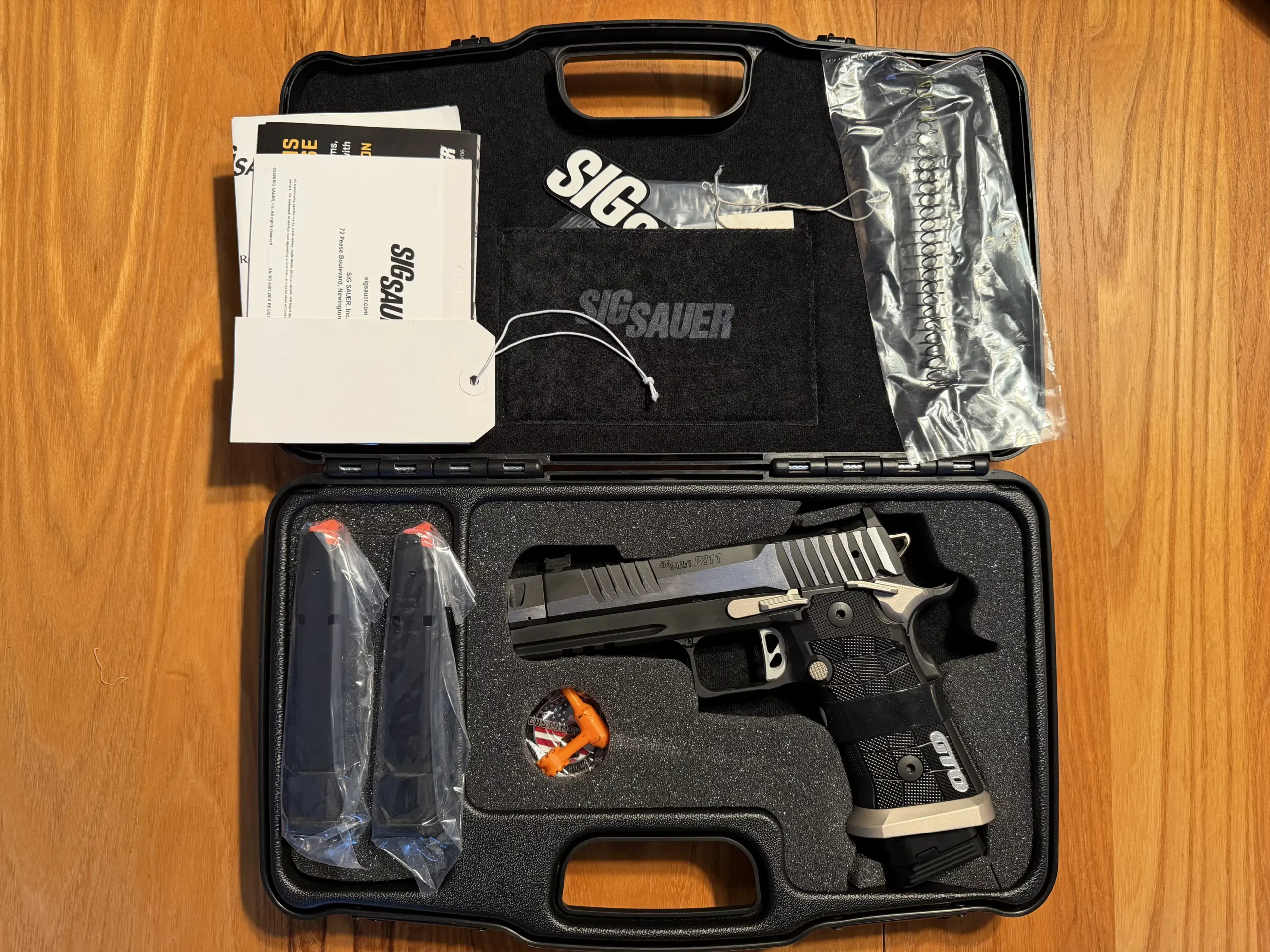 Each pistol ships with three steel magazines (one 23-rd, two 21-rd). Packaging and ancillary contents may vary by SKU and retailer. For operating procedures, maintenance, and detailed safety instructions, refer to the official P211 Owner’s Manual linked below.
